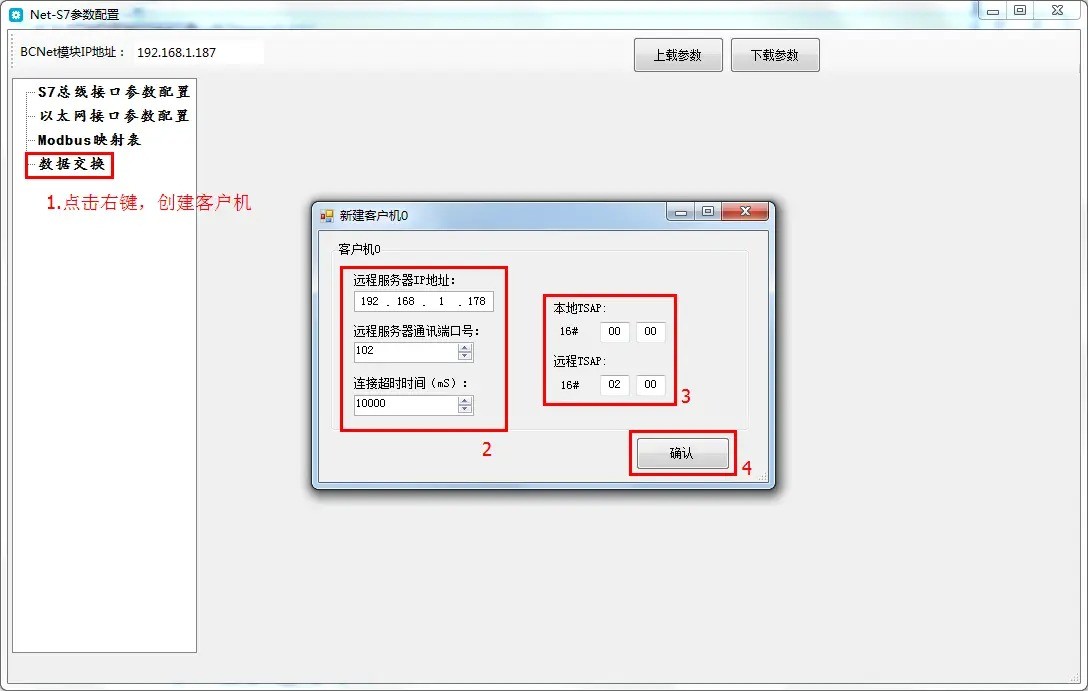 【2】远程服务器的 IP 地址为 S7-1200 的IP 地址,这里设置为