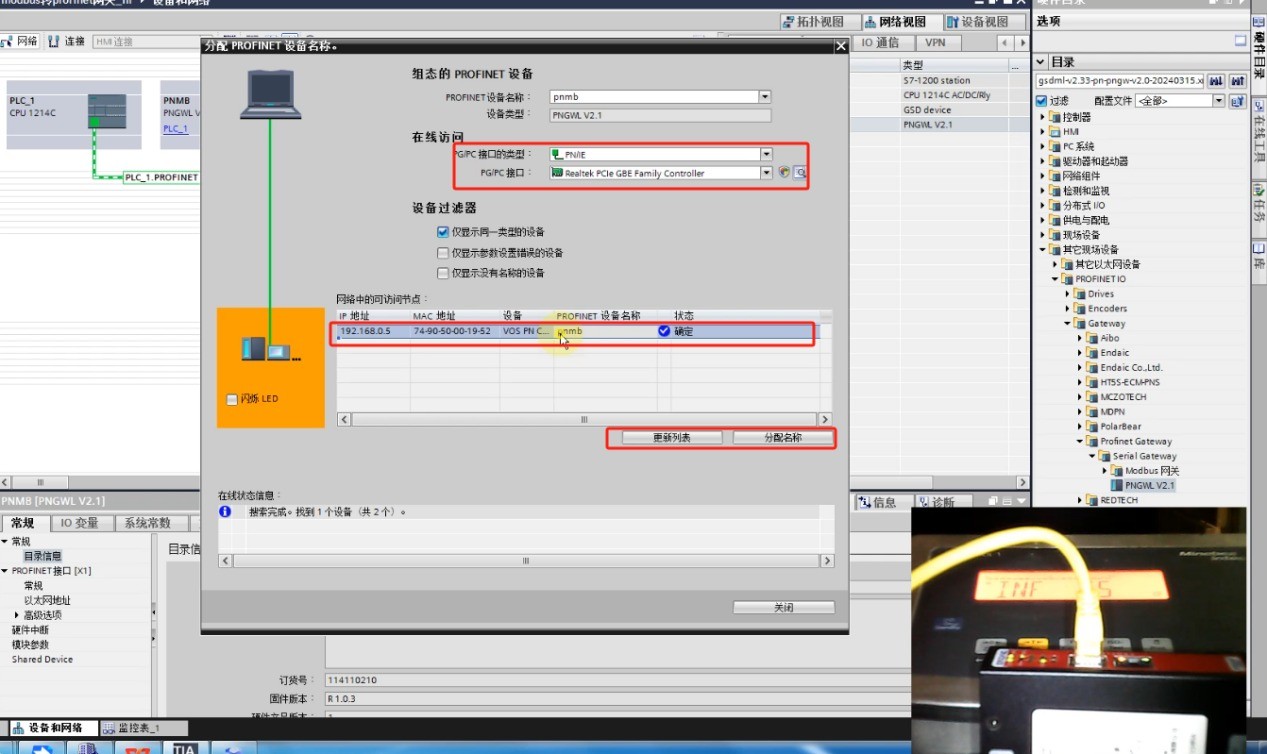 7、右击模块找到“分配设备名称”选择接口类型更新列表 选中搜索到的设备点击分配名称: